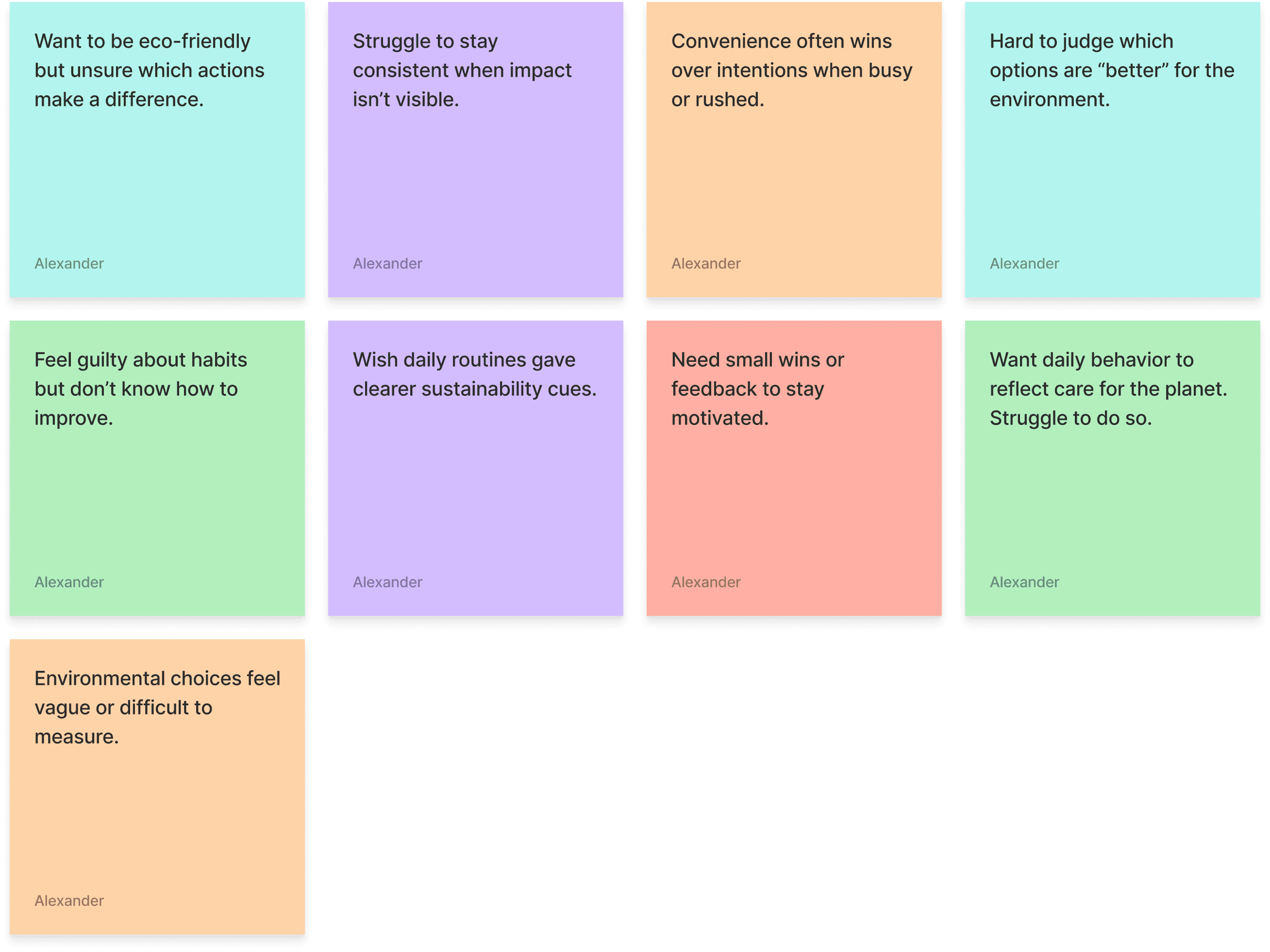 Environmental concern emerged as a recurring priority across interviews. Participants wanted their daily choices to reflect their values but were often unsure whether their efforts made a meaningful impact, leading many to rely on familiar routines instead.