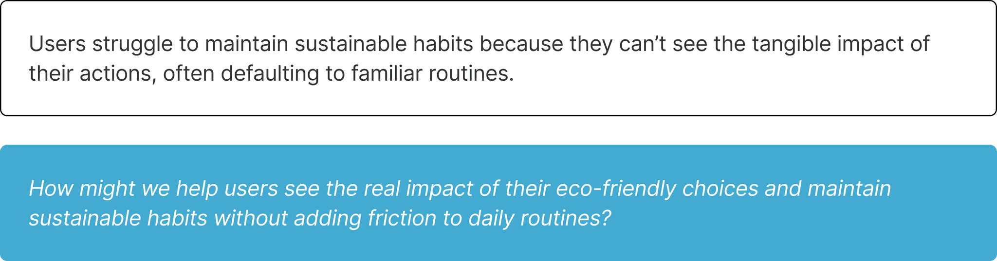 Users struggle to maintain sustainable habits because they’re unsure whether their actions make a real difference. When feedback is unclear or missing, even motivated individuals revert to familiar routines, leading to inconsistent engagement with eco-friendly behaviors.
