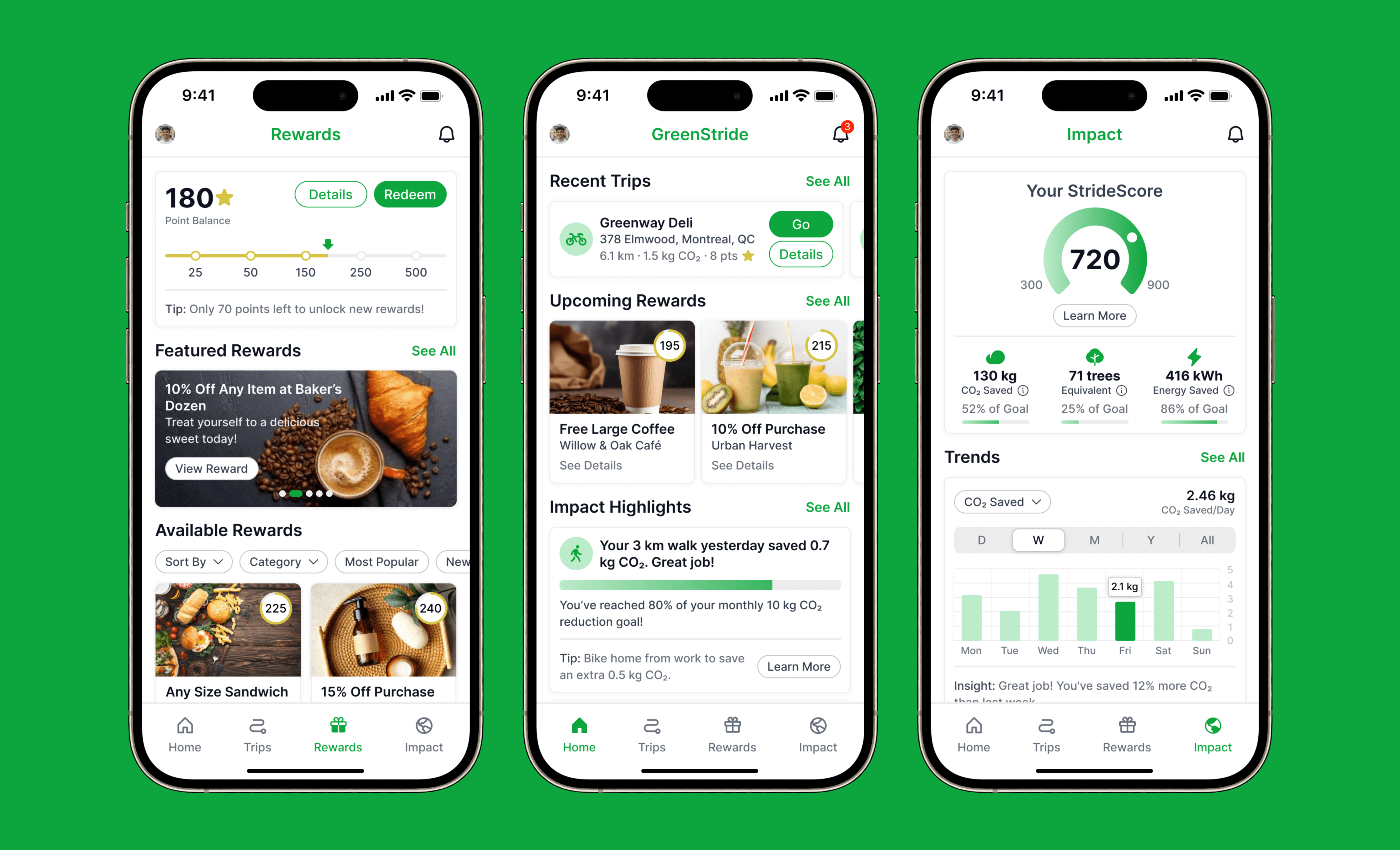 StrideScore: A single score reflects overall progress, with insights to help improve your sustainability efforts.