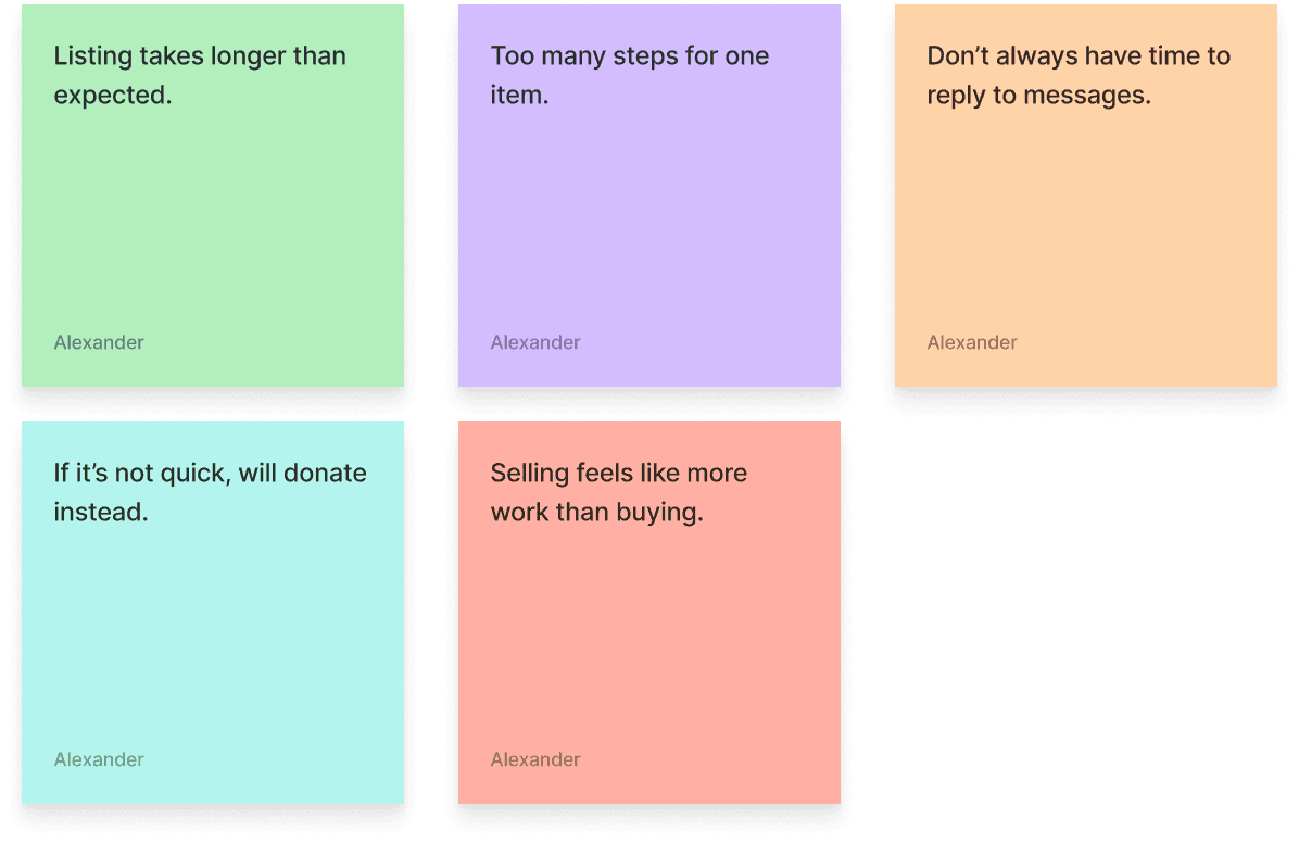 Interviews revealed recurring friction across the secondhand clothing resale experience. While parents were motivated to buy and sell, decisions were often delayed or abandoned when the effort required or outcome felt unclear.